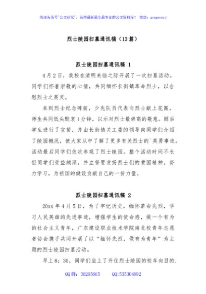 / (13篇)烈士陵园扫墓通讯稿