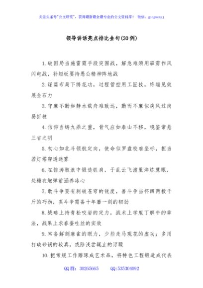 / (30例)领导讲话亮点排比金句