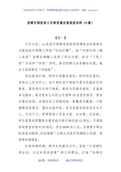 / (8篇)党建引领医保工作高质量发展典型材料