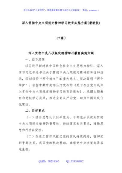 / (7篇)深入贯彻中央八项规定精神学习教育实施方案(最新版)