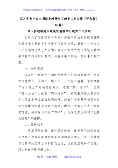 (6篇)深入贯彻中央八项规定精神学习教育工作方案(详细版)