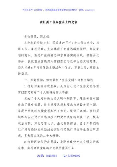 / 在区委工作务虚会上的发言