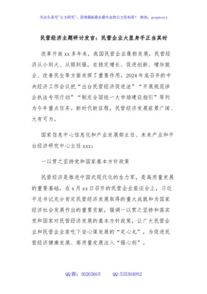 / 民营经济主题研讨发言:民营企业大显身手正当其时