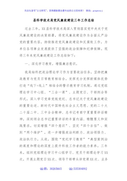 / 县科学技术局党风廉政建设三年工作总结