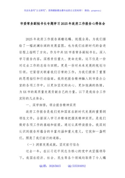 / 市委常务副秘书长专题学习2025年政府工作报告心得体会