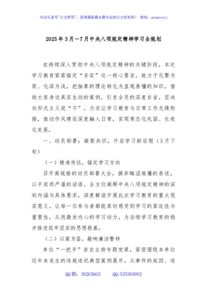 / 2025年3月-7月中央八项规定精神学习全规划