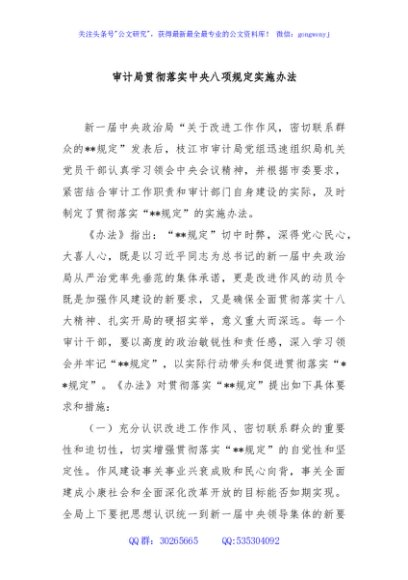 / 审计局贯彻落实中央八项规定实施办法