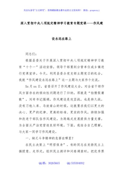 / 深入贯彻中央八项规定精神学习教育专题党课——作风建设永远在路上