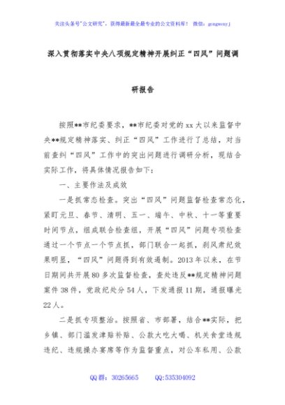 / 深入贯彻落实中央八项规定精神开展纠正“四风”问题调研报告