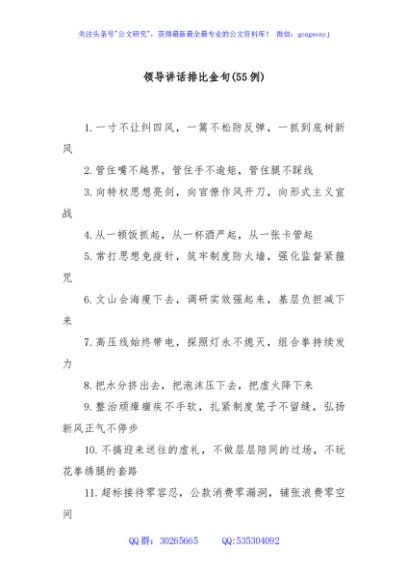 / (55例)领导讲话排比金句