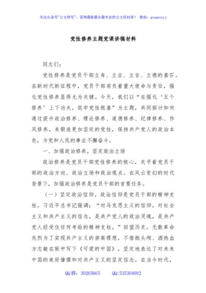 / 党性修养主题党课讲稿材料