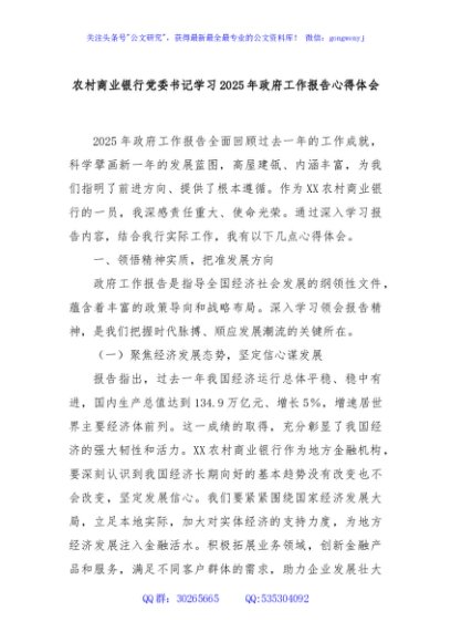 / 农村商业银行党委书记学习2025年政府工作报告心得体会