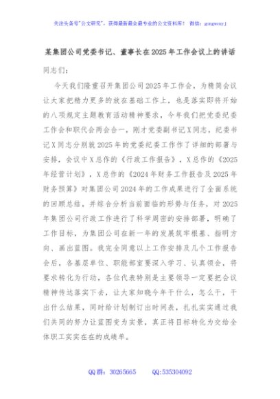 / 某集团公司党委书记、董事长在2025年工作会议上的讲话
