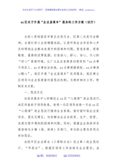 / xx区关于开展“企业直通车”服务的工作方案(试行)