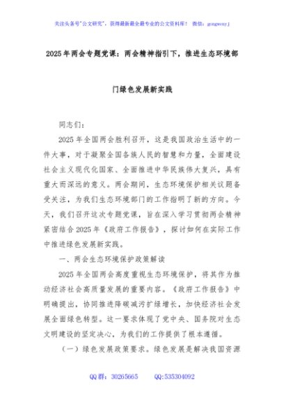 / 2025年两会专题党课:两会精神指引下,推进生态环境部门绿色发展新实践