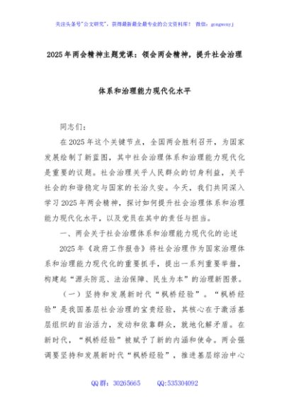/ 2025年两会精神主题党课:领会两会精神,提升社会治理体系和治理能力现代化水平