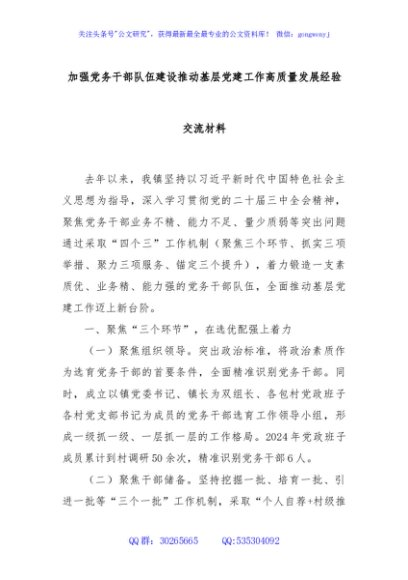 / 加强党务干部队伍建设推动基层党建工作高质量发展经验交流材料