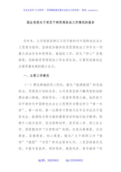 / 国企党委关于党员干部思想政治工作情况的报告