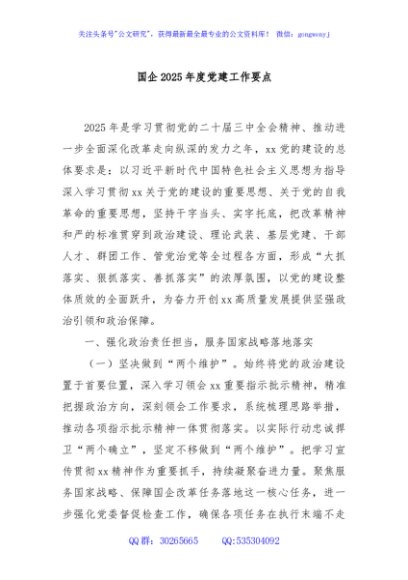 / 国企2025年度党建工作要点