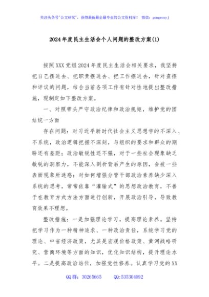 / 2024年度民主生活会个人问题的整改方案(1)