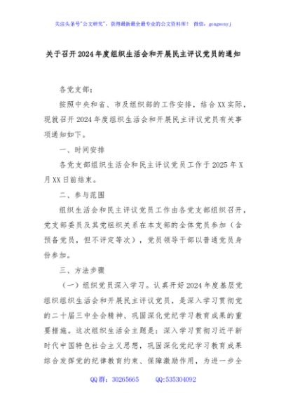 / 关于召开2024年度组织生活会和开展民主评议党员的通知