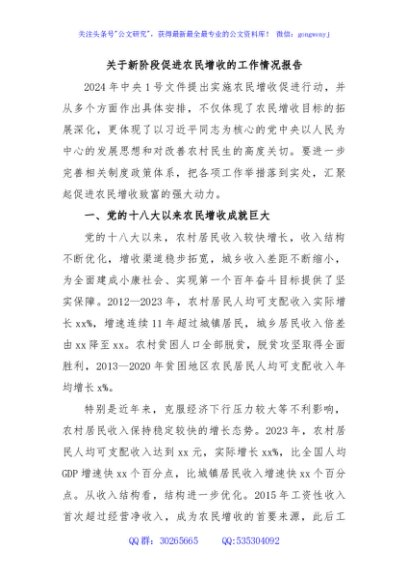 / 关于新阶段促进农民增收的工作情况报告