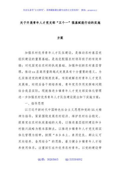 / 关于开展青年人才党支部“五个一”强基赋能行动的实施方案