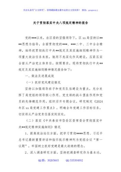 关于贯彻落实中央八项规定精神的报告