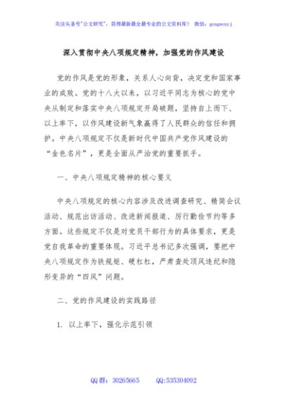 / 深入贯彻中央八项规定精神,加强党的作风建设