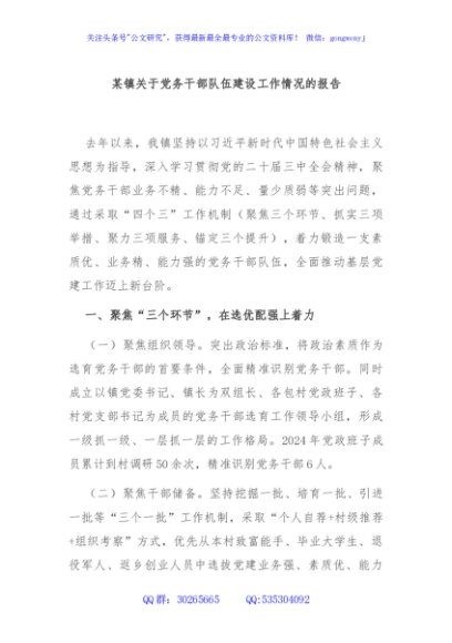 / 某镇关于党务干部队伍建设工作情况的报告