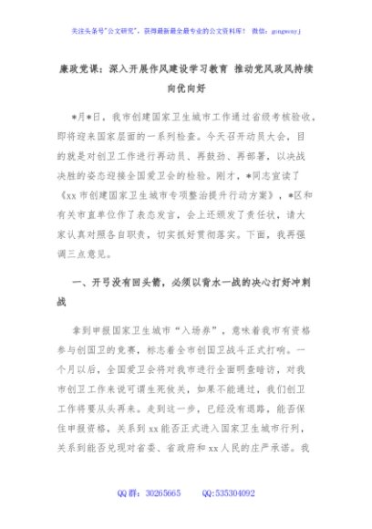 / 廉政党课:深入开展作风建设学习教育 推动党风政风持续向优向好