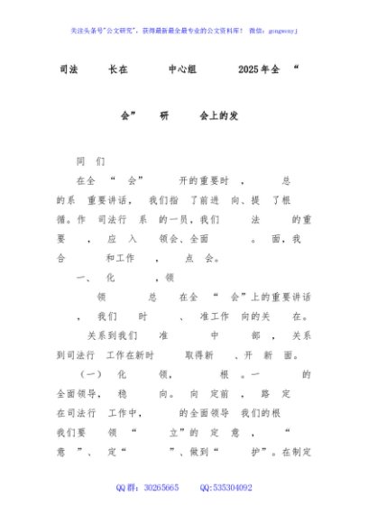 / 司法局副局长在理论学习中心组专题学习2025年全国“两会”精神研讨交流会上的发言