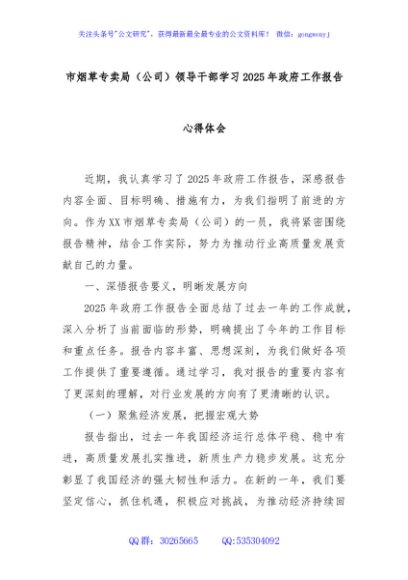 / 市烟草专卖局(公司)领导干部学习2025年政府工作报告心得体会