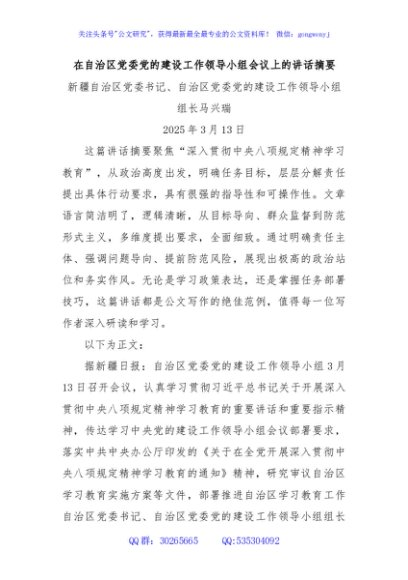 / 在自治区党委党的建设工作领导小组会议上的讲话摘要