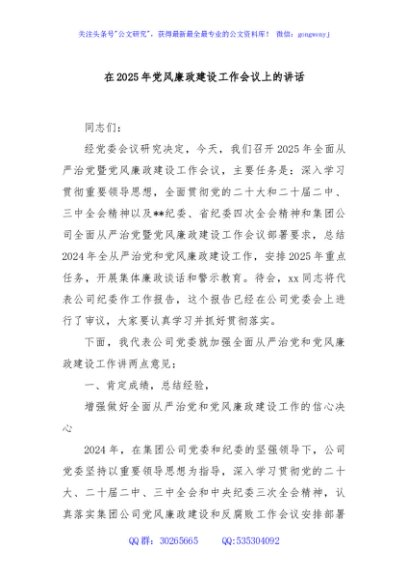 / 在2025年党风廉政建设工作会议上的讲话