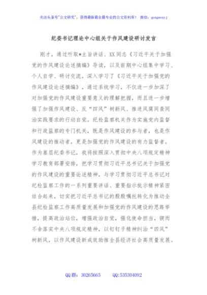 / 纪委书记理论中心组关于作风建设研讨发言