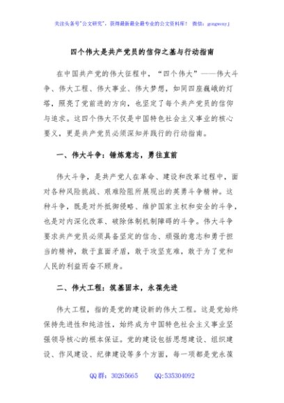 / 四个伟大是共产党员的信仰之基与行动指南