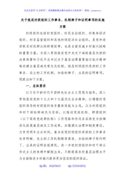 / 关于规范村级组织工作事务、机制牌子和证明事项的实施方案
