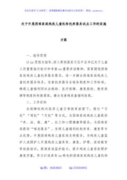 / 关于开展困难家庭残疾儿童机构托养服务试点工作的实施方案