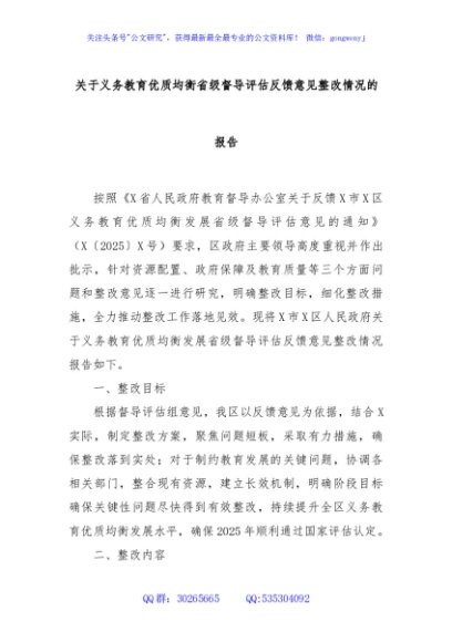 / 关于义务教育优质均衡省级督导评估反馈意见整改情况的报告