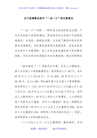 / 关于统筹解决我市“一老一小”的对策建议