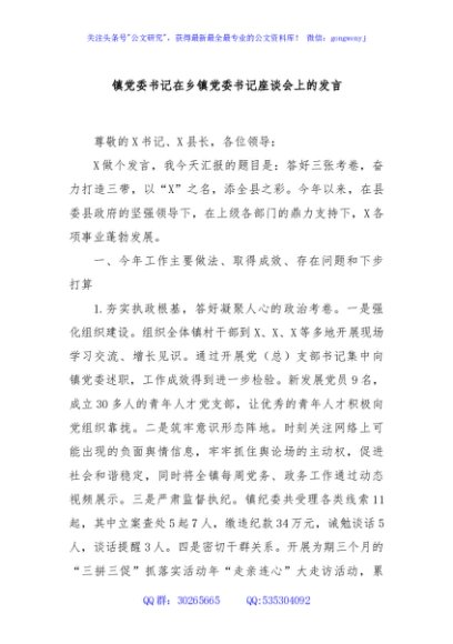 / 镇党委书记在乡镇党委书记座谈会上的发言