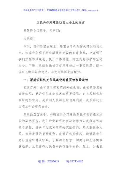/ 在机关作风建设动员大会上的发言