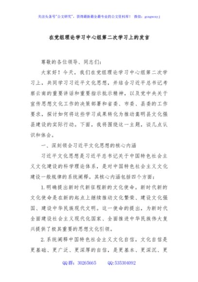 / 在党组理论学习中心组第二次学习上的发言