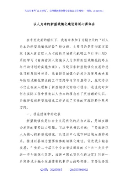 以人为本的新型城镇化建设培训心得体会