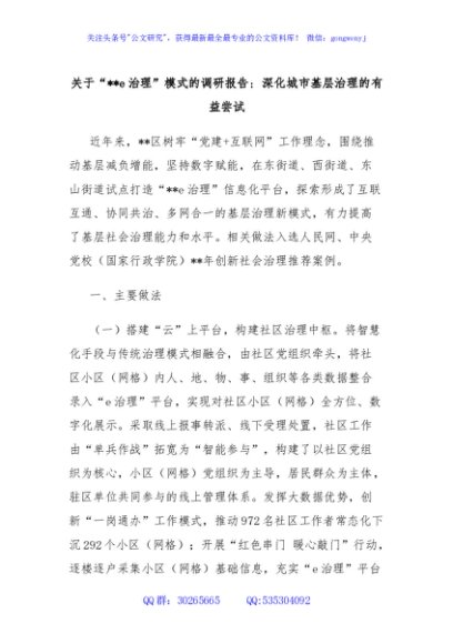 关于“e治理”模式的调研报告:深化城市基层治理的有益尝试