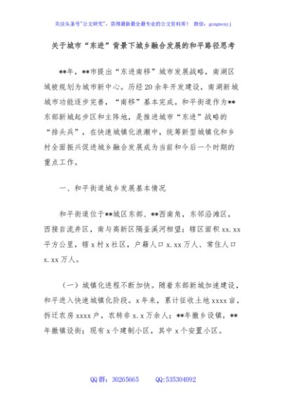 / 关于城市“东进”背景下城乡融合发展的和平路径思考