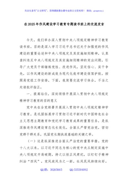 / 在2025年作风建设学习教育专题读书班上的交流发言