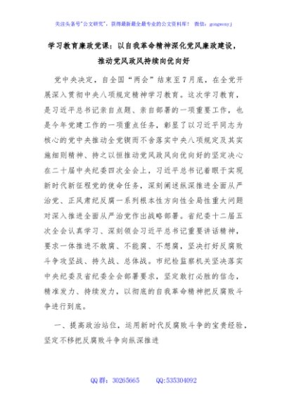 学习教育廉政党课:以自我革命精神深化党风廉政建设,推动党风政风持续向优向好