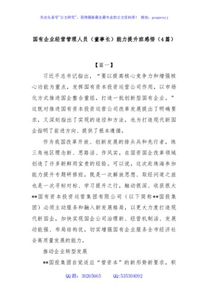 / (4篇)国有企业经营管理人员(董事长)能力提升班感悟